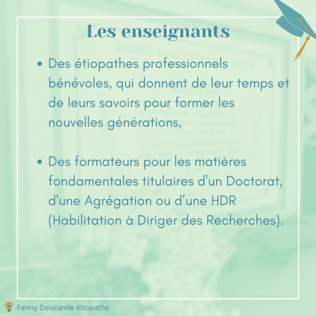 - Des étiopathes professionnels bénévoles, qui donnent de leur temps et de leurs savoirs pour former les nouvelles générations,